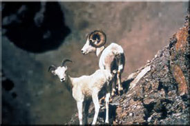 Dall sheep are found in relatively dry country and frequent a special combination of open alpine ridges, meadows, and steep slopes with extremely rugged "escape terrain" in the immediate vicinity. They use the ridges, meadows, and steep slopes for feeding and resting. When danger approaches they flee to the rocks and crags to elude pursuers. They are generally high country animals but sometimes occur in rocky gorges below timberline in Alaska. Look for Dall sheep at Denali National Park; along the Seward Highway at Windy Corner, Mile 106; and along the Glenn Highway at Sheep Mountain, Mile 107.